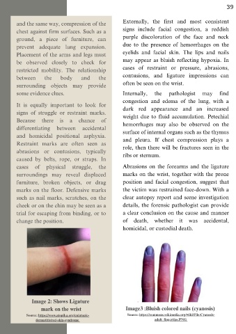 cases of physical struggle, the Abrasions on the forearms and the ligature