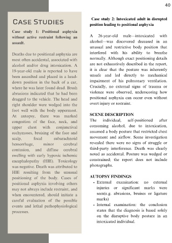positioning of the body. Cases of AUTOPSY FINDINGS