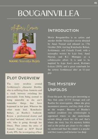 other main lead, Kunchacko as the suspect. Because of Reethu’s