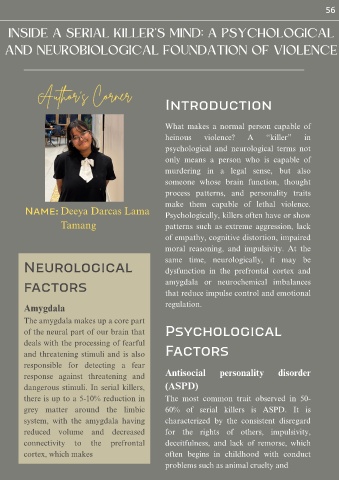 Name: Deeya Darcas Lama Psychologically, killers often have or show